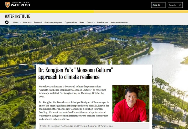更多会议信息,请复制一下链接至浏览器:https://uwaterloo.ca/water-institute/news/dr-kongjian-yus-monsoon-culture-approach-climate-resilience