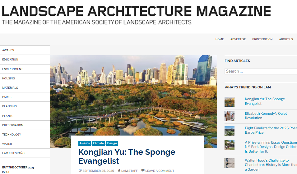 The article "Kongjian Yu: The Sponge Evangelist" from Landscape Architecture Magazine (September 25, 2025) profiles the late Chinese landscape architect Kongjian Yu, FASLA, who tragically passed away in a plane crash in Brazil on September 23, 2025. Yu was renowned for his pioneering concept of "sponge cities," which emphasizes the integration of natural systems into urban design to enhance water absorption and resilience. His work advocated for transforming gray infrastructure into green, water-absorbing landscapes to address climate challenges. Yu's influence extended globally, notably through his role as the founder of Turenscape and as a professor at Peking University, where he established China's first landscape architecture program in 1997. His legacy continues to inspire sustainable urban planning and ecological design worldwide.