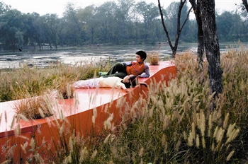 而汤河公园红飘带则提供了一个活的案例,它表明我们完全可以有更明智的城市绿地与河流廊道的改造和利用方式,在城市化进程中保留自然河流的绿色与蓝色基底,维护其生态服务功能,用节约型城市和可持续环境的理念,用最少量的人工干预、最少的设计和工程,满足现代城市人的最大需要,创造一种人与自然和谐的生态与人文空间。