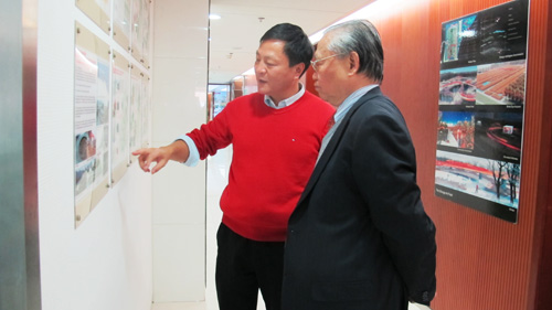参观中,俞孔坚教授介绍了土人设计近年来从宏观、中观、微观三个层面跨尺度对城市建设和设计的理论研究和实践成果,鲍教授对俞教授的研究团队和设计队伍所做的众多项目表示称叹。