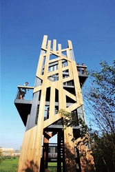 这样的景观艺术范儿还绽放在贵州六盘水,那里的湿地公园被设计成“水舞钢城”,红色的竹木栈道宛如一条飘舞的彩带婀娜在碧水绿树之间;河北迁安三里河,原本是一条臭气熏天的“臭河浜”,设计者充分利用生态技术并融入了大地艺术,用一条钢做的红(黄)折纸作为蜿蜒河沿的标志符号,配以蜿蜒的木步道,衬以绿树繁花,托以夜晚的霓灯,这里如今早已成为小学生放学的好去处,幼儿园小朋友戏耍的天堂;还有天津的桥园已成为很好地“城市-自然”谱系样本。