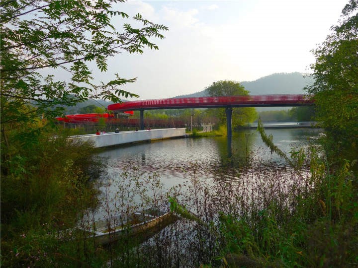 后来,我又相继在浙江主持设计了金华燕尾洲公园、衢州鹿鸣公园、浦阳江生态廊道等项目。其中,金华燕尾洲公园获2015年世界建筑节最佳景观奖,衢州鹿鸣公园设计获美国景观设计师协会荣誉奖。浦阳江生态廊道景观全长17公里,是浙江省五水共治的首个示范项目,全部贯彻海绵城市理念,沿线最大限度保留自然地被,累计种植水杉、银杏、枫杨树等乔木15万余株,栽种鸢尾、再力花、菖蒲等水生植物、播撒野花组合等地被植物2250亩,建设亲水平台26个,让曾经被严重污染的沿江环境彻底得到生态修复。整个浦阳江生态廊道,以都市田园、翠湖荡漾、湖山旧事、碧潭迎客等浦阳江新十二景为主线,通过新建人行栈桥、滨水平台、运动球场和生态停车场等配套设施,整条廊道不仅美丽大方,还集绿道、游憩、休闲、运动、健身等多功能为一体,成为浦江崭新的全域“水岸风景带”,为游人和居民留下难忘的“浦江印象”。
