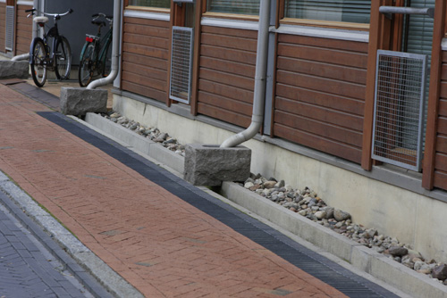 这并非房屋所有者的个人所为,而是政府要求开发商必须这样做。在规划这一区域的住宅时,政府设定了一个绿色补偿机制,规定开发商建多少水泥房子,就要进行相应的绿地补偿,以维护这一区域的绿色平衡。开发商可以选择铺设绿色屋顶,也可以在院子里种植灌木丛,还可以选择铺设渗水砖,不同的方案有不同的打分系数,并需经过政府同意。其中绿色屋顶是最受鼓励的方案,并在马尔默全市推广。