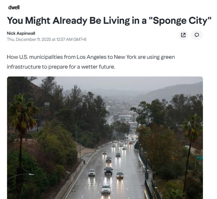 文章指出,包括洛杉矶在内的许多城市正在采用由俞孔坚教授首创的“海绵城市”理念。通过以绿地、湿地和可渗透景观替代硬质铺装,城市能够吸纳雨水、减少洪涝并补充地下水。文章展示了俞孔坚以自然为本的理念如何从中国走向世界,并正在重塑城市应对气候变化的方式。