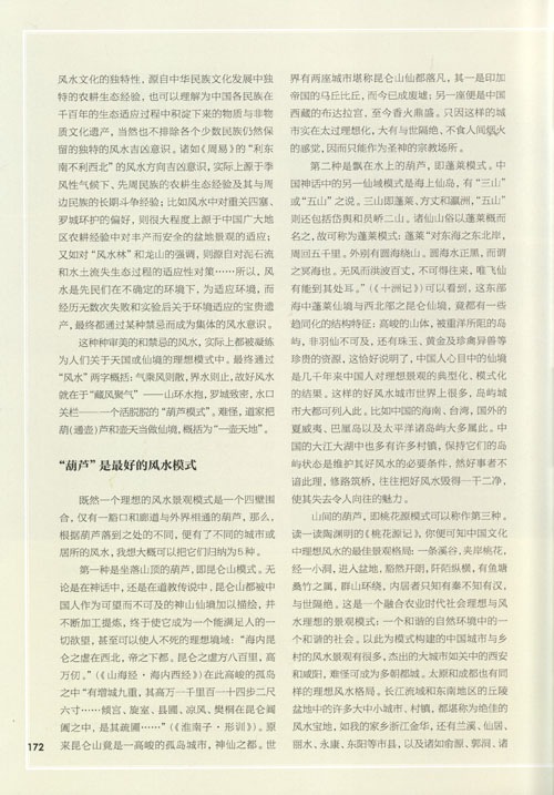 实际上,如果理性地分析风水术和风水景观,问题可能并不那么玄妙。首先,必须明确(看)风水是一种文化现象,从人类进化和文化发生与演化的角度来认识,风水是中国文化对不确定环境的适应方式,一种景观认知模式,包括对环境的解释系统、趋吉避凶的控制和操作系统。