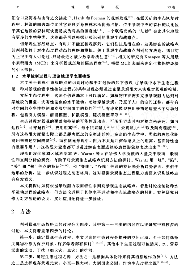 景观生态战略点识别方法与理论地理学的表面模型