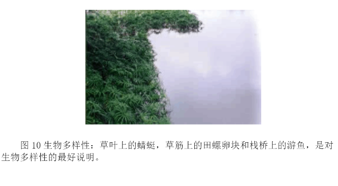 3、 水际植物群落:根据水位的变化及水深情况,选择乡土植物形成水生-沼生-湿生-中生植物群落带,所有植物均为野生乡土植物,使岐江公园成为多种乡土水生植物的展示地,让远离自然、久居城市的人们,能有机会欣赏到自然生态和野生植物之美。同时随着水际植物群落的形成,使许多野生动物和昆虫也得以栖居、繁延(图10)。所选野生植物包括:水生的荷花,茭白,菖蒲,旱伞草,茨菇等;湿生和中生的包括芦、苇象草,白茅和其他茅草,苦苡等。