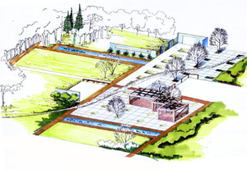 以"芦芽粘露湿, 蜻蜓带荷馨"作为设计构思之源,通过芦芽之嫩、晨露之洁、荷之清新、蜻蜓之朴实,从这一概念化的生态景观,一步一步演绎抽象化的自然风貌,回到儿时的记忆。以其缘起为纲,体现出我们的设计--旨在创造自然的清新之意、纯朴之境,隐寓"新新家园"之意。