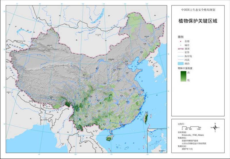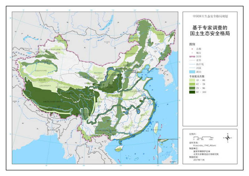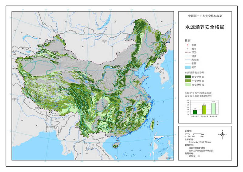 中国国土生态安全格局规划研究:本研究旨在利用景观生态学、景观安全格局等理论与方法,构建综合国土生态安全格局来作为指导国土可持续发展,保障国家与民族生存和发展的基本生态构架。研究综合运用GIS和遥感技术,从江河源区水源涵养、洪水调蓄、沙漠化防治、水土保持和生物多样性保护五个方面进行生态过程分析与评价,得出相应的生态安全格局。