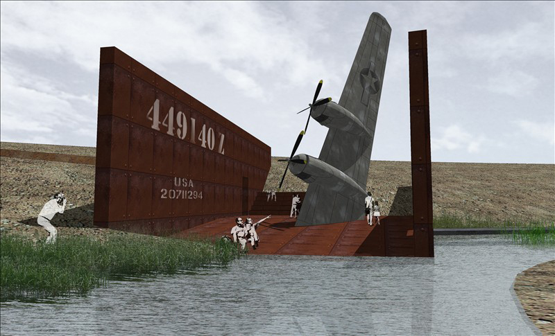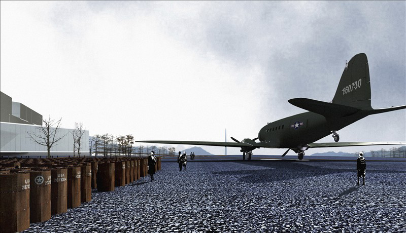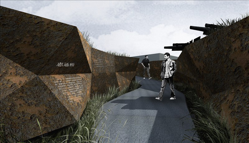 将室内展示充分延续、贯穿至室外,用战斗机、汽油桶、战壕等一系列道具模拟当时的战争片段,塑造连续的纪念性空间,规划出生动的参观路线和系列化的室外展场。