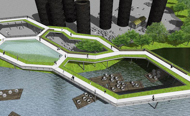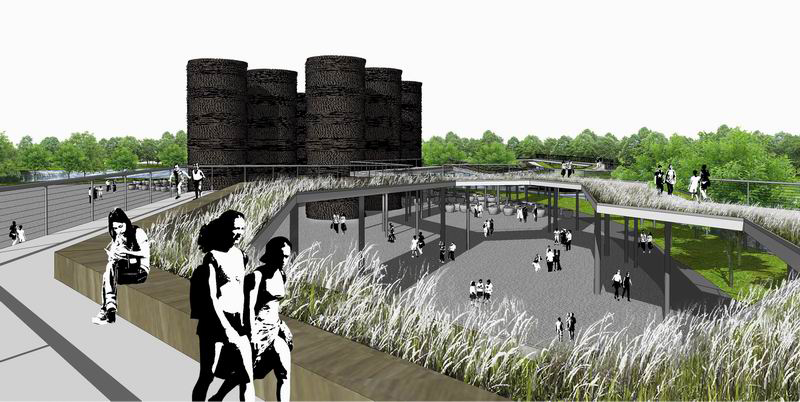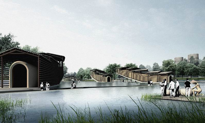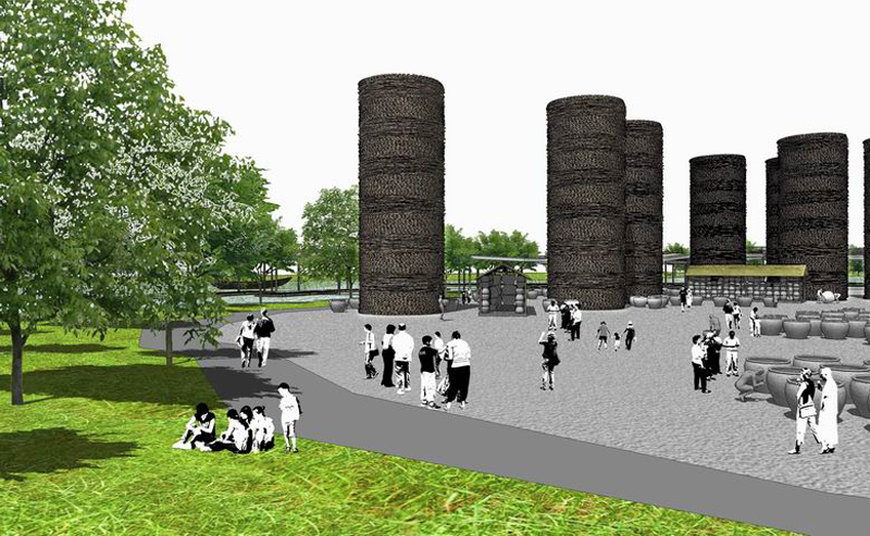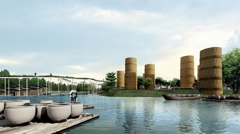 在旧址中心区域建造南风古灶公园,从龙窑、木筏、柴垛等真实、平凡的物体中提炼出大地艺术语言、景观艺术语言、生态语言,打造当代陶文化圣地的核心景观图景。