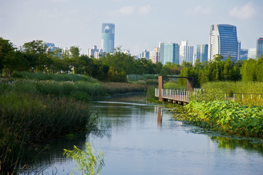 加强型城市人工湿地净化系统技术全套应用在了上海后滩公园的内河人工净化湿地建设中。内河净化湿地位于场地的中间层,整体功能突出湿地作为自然栖息地和水生系统净化功能、生产以及审美启智和科普教育等功能,是后滩公园中的核心内容。