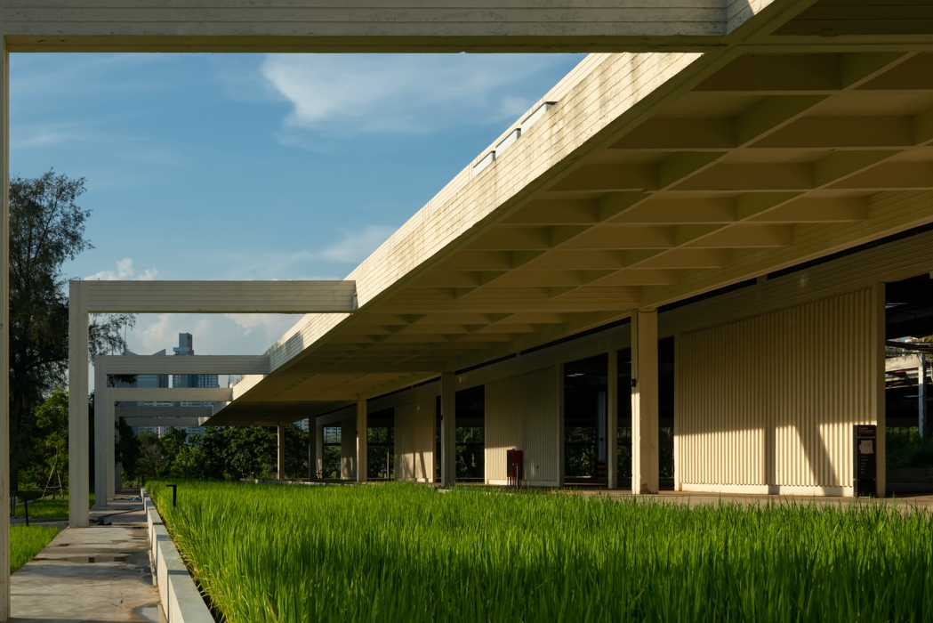 公园内部在保留和重新利用主要道路的同时,通过可渗透的生物滞留池和花圃,分隔自行车道与人行道,使原本为重型卡车设计的宽阔道路拥有更加宜人的尺度。沿着浅水湿地的边缘增设的多条相互交织的栈道可创造慢行的休闲体验,让游客沉浸式地感受人工湿地的自然景观。公园核心区域的大草坪和户外剧场、博物馆旁的水稻田、大量的林下空间等场所旨在创造多样活动的都市乐园,为曼谷市民及游客的各类公共生活提供舞台。