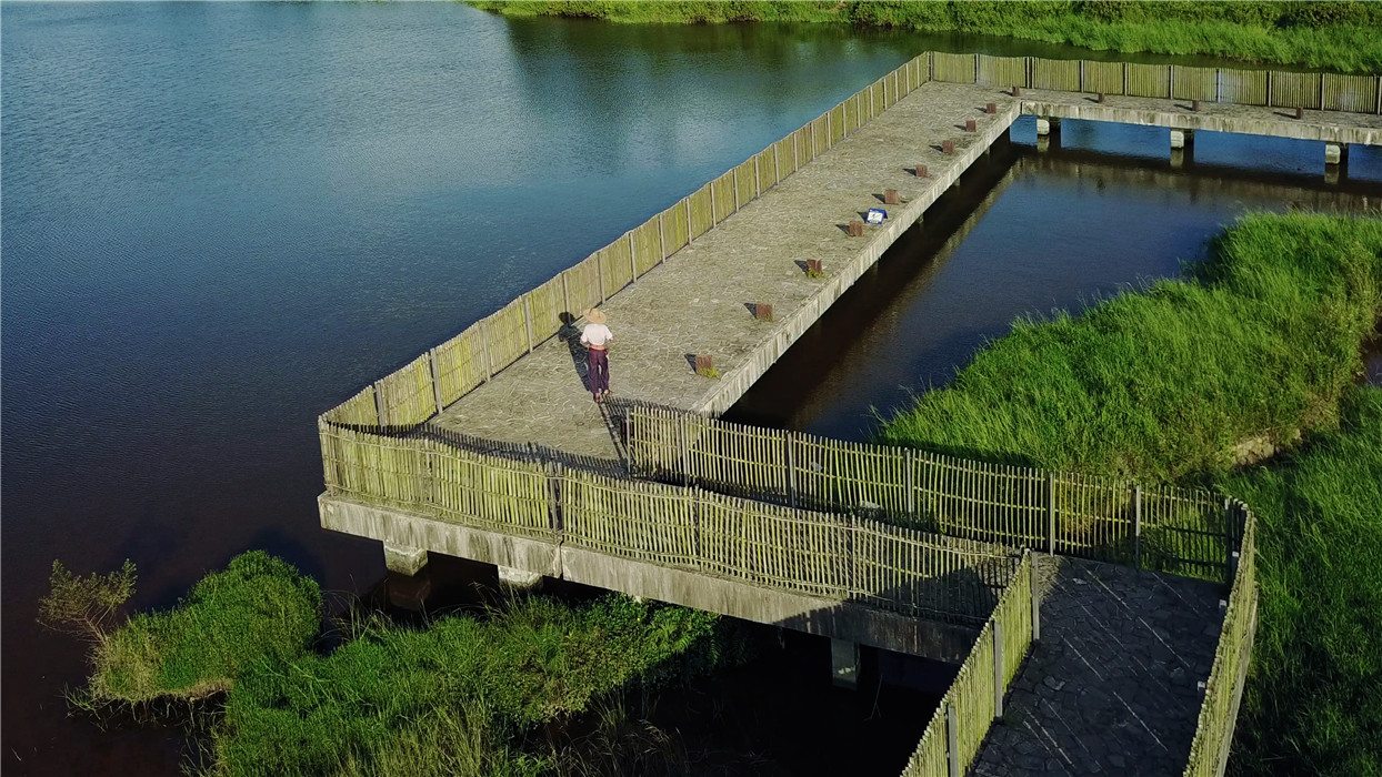 公园里人工设施和漫步道的设置也是建立在恢复生态环境基础之上。通过置入折桥、观景台、码头、水榭、建筑、水坝、栈道等,让人们畅游其中时能有丰富而有趣的体验。而为了尽可能减少人工建造对自然环境的负面影响,场地中人工元素的材料大多都来源于共和镇本地可取素材,如竹、木、毛石等。手法上也采用了当地常用的建造方式。造价低廉,却野趣盎然。