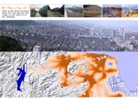 paths extends from the urban fabric downwards the park,